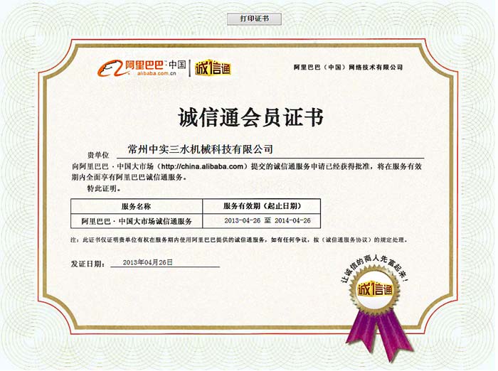 阿里誠信通會員證書