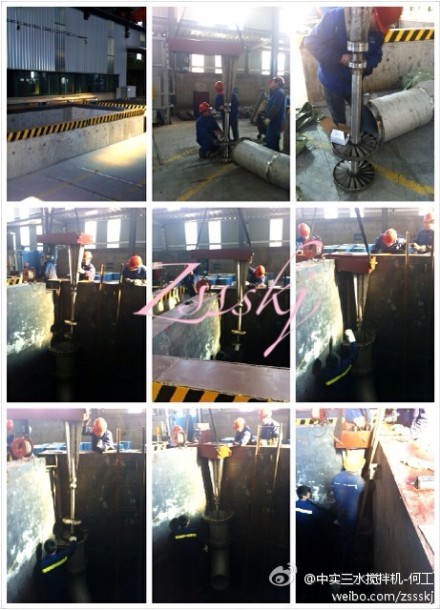 雖然農歷年臨近,但應客戶需求,今天我們赴浙江客戶處指導淬火池熱處理冷卻攪拌機的現場安裝指導。 此項目要求“導流管的出水方向可以調節”,在導流管里配置液體攪拌機方面,我們已經擁有多項實用技術。今年我們又分別在3個項目里推廣應用多層滿葉型軸流推進槳,均獲得了很好的工藝效果,同時在這個項目過程中我們還解決了一項避免焊接變形的工藝難點,下面是施工現場的組圖片: