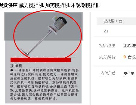 公司的攪拌機(jī)圖片又被同行盜用了,今天在阿里巴巴1688首頁隨意用了幾個(gè)關(guān)鍵詞“不銹鋼攪拌機(jī)”、“化工攪拌機(jī)”、“液體攪拌機(jī)”、“加藥攪拌機(jī)”居然搜出了不少盜用的圖片,看到這種情況不介意是假的,畢竟是自己的知識產(chǎn)權(quán),況且“瘌痢頭的兒子是自己的好”,從產(chǎn)品的研發(fā)、設(shè)計(jì)、生產(chǎn)、拍攝到PS修整,沒一項(xiàng)都是自己心血的結(jié)晶,就這樣不打招呼的被人“借走”怎么想也不是滋味,但遇到這種情況更多的是無奈。